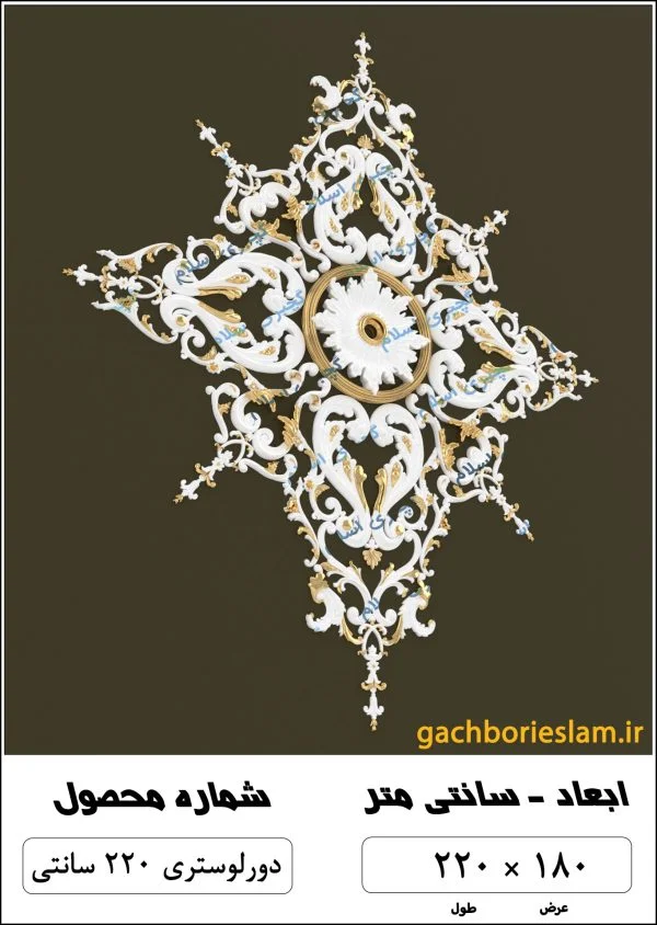 این طرح چیدمان شده دور لوستری 220 سانتی متری را می توان برای سقف های سالن و سقف های دیگر که ظرفیت نصب این طرح را داشته باشد نصب کرد.