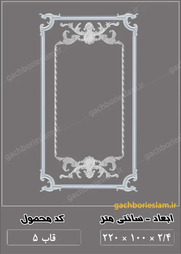 طرح گچبری برای دیوار یا به عبارتی قاب بندی دیوار با گچ کد قاب 5 مناسب برای اجرای قاب بندی طولی و عرضی می باشد .