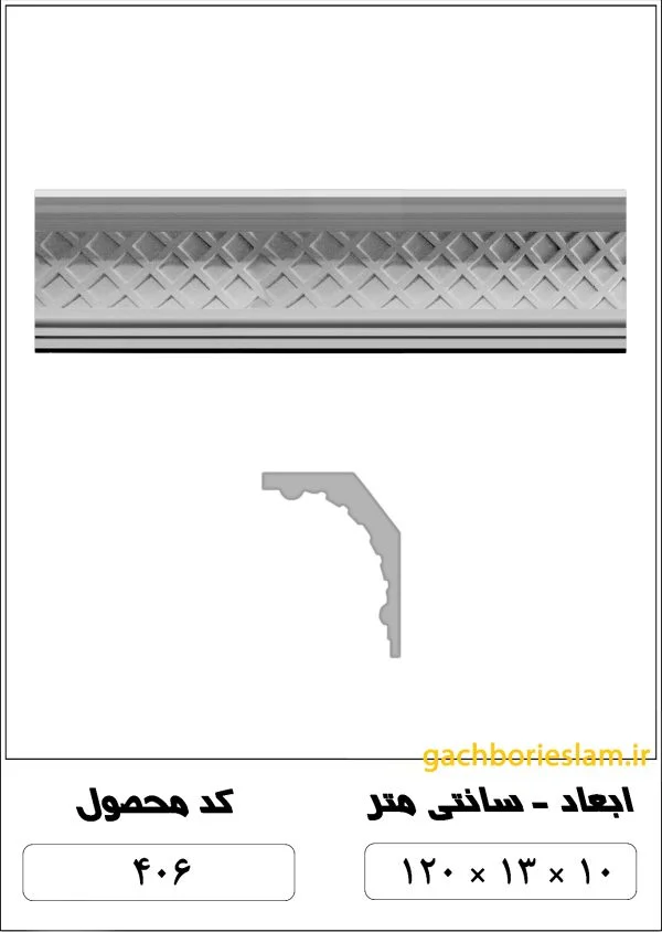 ابزار پیش ساخته و گچی گچبری گلویی حصیری کد 406 از مواردی می باشد که در محل تقاطع دیوار و سقف هستند و قابلیت اجرا بروی گچ، سیمان و کناف را دارند.