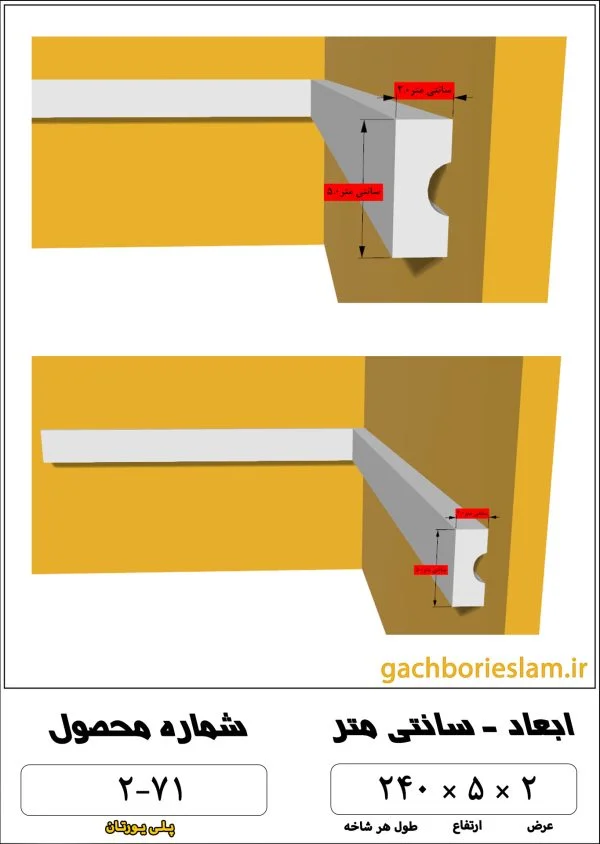 در بین محصولات گچبری طرح ساده ، ابزار گچبری ساده پلی یورتان شماره 71-2 با ابعاد متوسط برای قاب بندی با طرح مقطع مستطیلی ارائه شده است که در طرح های دیواری و سقفی مورد استفاده قرار می گیرد.