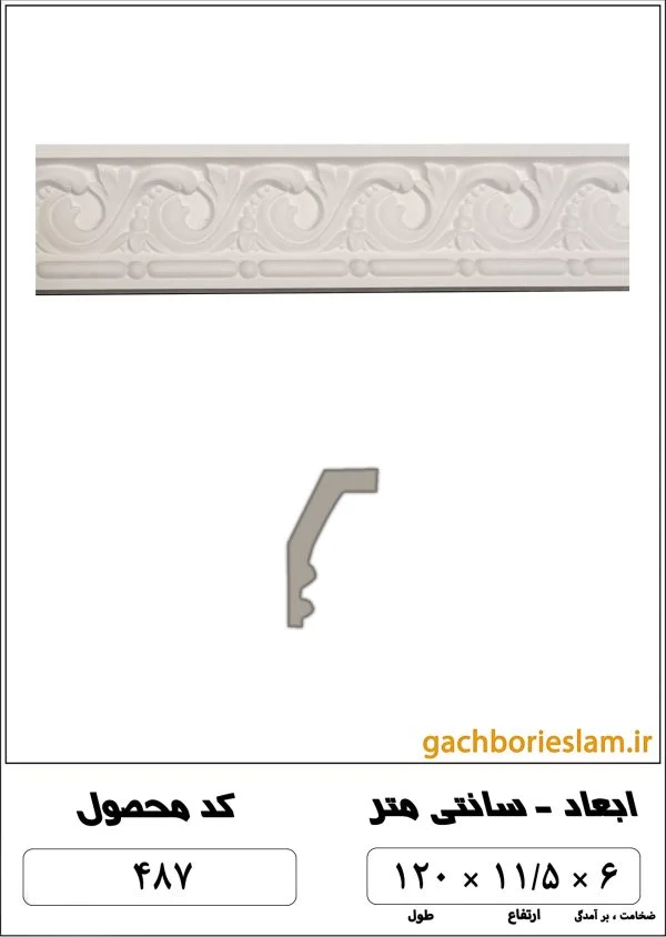 طرح با ابعاد متوسط برای سقف می باشد و ابزار نورمخفی کد 487 می تواند به صورت تکی و یا ترکیب با گچبری ریز نصب شود.